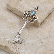 Byzantine Key Pendant - 18k Gold & Sterling Silver Pendant