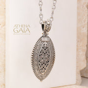 Thalassia Ellipse Pearl Framed Ruby Cross Pendant - Sterling Silver Pendant
