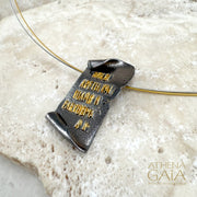 Commemorative necklace celebrating 200 years of Modern Greece — 200 years since the outbreak of the Greek Revolution of 1821 and the War of Independence. This symbol reads "Mettle and virtue is what Freedom wants" borrowed from the “Fourth Ode, To Samos” by Andreas Kalvos.It is a 2021 design but will be made new to order.