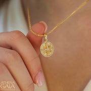 ICXC NIKA Full Stone Circular Konstantinata Cross - 14k Gold