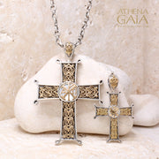 Chi Rho Latin Cross (Small) - 18k Gold & Sterling Silver - Cross Necklace