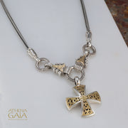 Garden Shadows Filigree Cross Necklace - 18k Gold & Sterling Silver - Maltese Cross