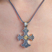 Gold Center Flared Western Cross - 18k Gold and Sterling Silver - Cross Necklace