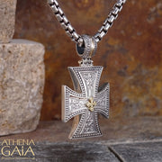 Maltese in Maltese Cross Necklace - 18k Gold and Sterling Silver - Cross Necklace