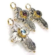 The Rustic Center Stone Orthodox Cross is crafted from 18k Gold and Sterling Silver with a center stone of your choice— making for a cross that's uniquely your own. This piece is perfect for adding a playful pop of elegance to your everyday style, or turning heads at your next special event. A timeless piece that exudes sophistication and elegance.