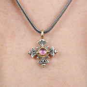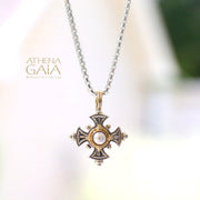 Silver Stone Maltese Cross (Small)- 18k Gold & Sterling Silver - Cross Necklace