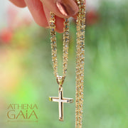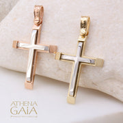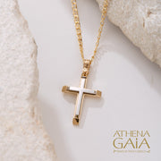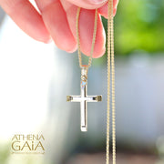 Two-Toned Beveled Cross - 14k Gold - Latin Baptismal Cross