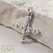 Diamond Row Greek Cross (Large) - 18k Gold - Byzantine Cross