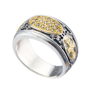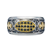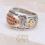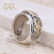 Patmos Maltese Cross Field Stone Ring - 18k Gold & Sterling Silver Ring - Cigar Band Ring