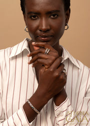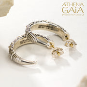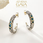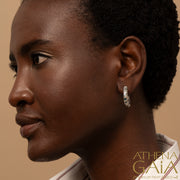 Kynthia Narrow Triple Stone Earrings - 18k Gold & Sterling Silver - Hoop Earrings