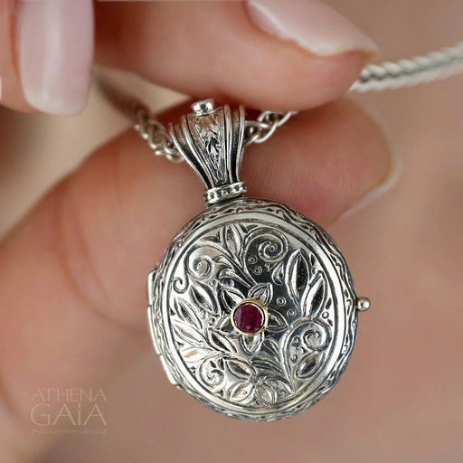 View full detailsSilver Etched Floral Ruby Locket Pendant - 18k Gold & Sterling Silver Pendant