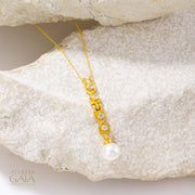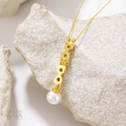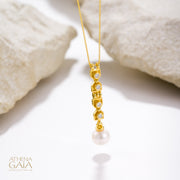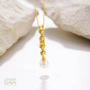 Byzantine Pearl Column Pendant Necklace - 18k Gold & Diamonds Necklace