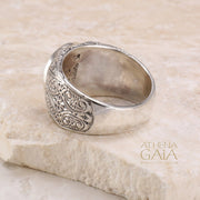 Each ring is meticulously handcrafted in Greece by Gerochristo artisans, blending ancient Byzantine techniques with modern precision. The substantial weight and club ring silhouette create a bold statement piece that honors both heritage and contemporary style.