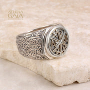 Chi Rho Sterling Silver Signet Ring - Handcrafted Christian Symbol Ring for Men