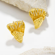 Golden Peonies Earrings - 18k Gold Earrings - Omega Clip Earrings