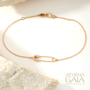 Golden Safety Pin With Diamonds Bracelet - 18k Gold Bracelet