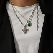 Classic Large Stone Pendant in Green Agate