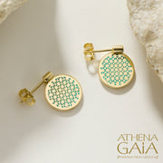 Periklista Round Enamel Drop Earrings - 18k Gold Earring - Post Earrings
