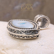 Crafted from 925 Sterling Silver with Mother of Pearl and Murano Glass, this Zelda Evil Eye Double-Sided Pendant boldly serves as a powerful shield against negative energies. With its large bail, which will accommodate most chain styles, this striking pendant is deal for all type of styles.