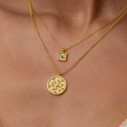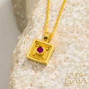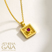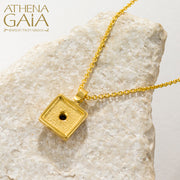 Byzantine Embroidery Square Pendant Necklace - 18k Gold Necklace