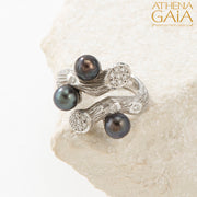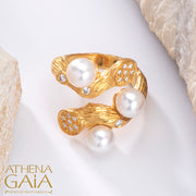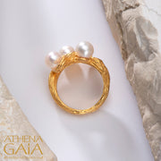 Four Seasons Winter Pearl Ring - 18k Gold Ring - Cocktail Ring