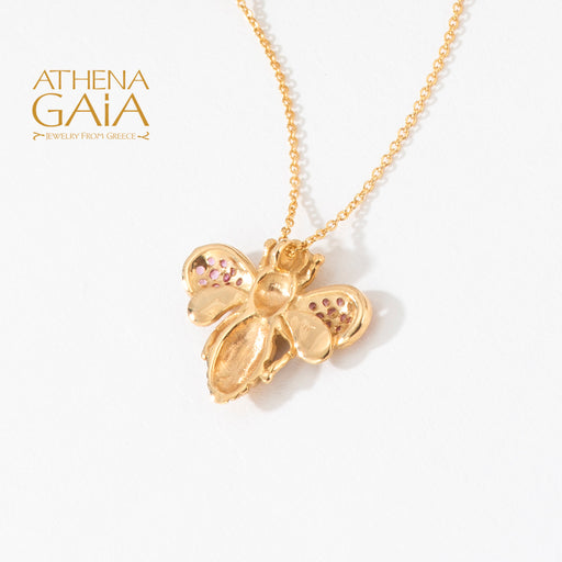 Maramenos & PaterasThis charming Herbs Let it Bee Stone Necklace features Mother Nature's favorite pollinator. Crafted from solid 18k Gold with gemstones of your choi...