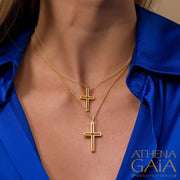 This exquisite 18k gold Latin cross, available in yellow, rose, or white gold, is a timeless symbol of faith. It is perfect for baptisms and as a constant reminder of your beliefs.
