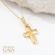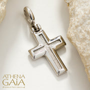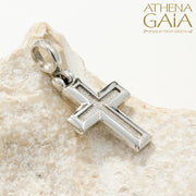 The Shadow and Light Aegis Latin Cross is expertly crafted in 18k gold, available in yellow, rose, or white. Its versatile design makes it suitable for all occasions, from baptisms and special events to daily wear.