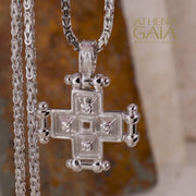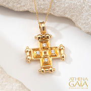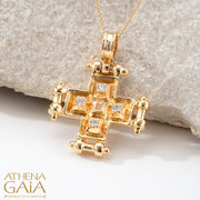 Shadow and Light Flanked 4 Diamond Greek Cross - 18k Gold - Orthodox Cross