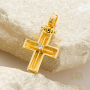 A unique, play with light and depth—Crafted with 18k gold and adorned with a sparkling diamond, this cross is perfect for baptisms or as a symbol of daily devotion.