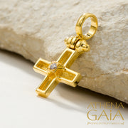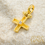Our Shadow and Light Greek Cross with a Diamond center is handcrafted in 18k gold and adorned with a diamond. This versatile piece is perfect for baptisms or as a daily reminder of faith and devotion. Radiate elegance and devotion with this exquisite cross, a symbol of enduring faith.