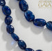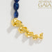 A single strand of blue sapphire beads strands creates a "river" of deep blue with a diamond encrusted 18k gold ribbon pendant. An additional golden ribbon holds the design at optional lengths for easy on and off, and moveable placements on the neck.