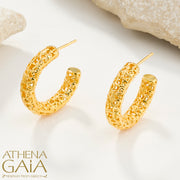 Byzantine Embroidery Gold Filigree Earrings - 18k Gold - Hoop Earrings