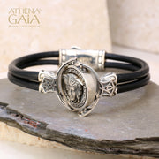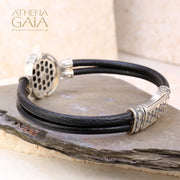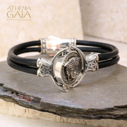 Medusa Swivel Double Strand Leather Bracelet - Sterling Silver Bracelet