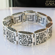Reversible Greek Key Bracelet (Large) - Sterling Silver Bracelet - Link Bracelet
