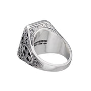 This Maltese Cross Shank Ring features an intricate 18k gold filigree design, with 925 Sterling Silver. This unisex ring is a blend of timeless artistry and refined sophistication, perfect for adding a subtle yet striking touch to any ensemble.s This ring has a comfortable tapered back, making it ideal for everyday wear.