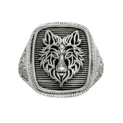 Wolf Face Ring - Sterling Silver Ring - Signet Ring