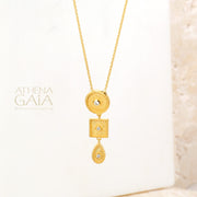 Geometric Circle Square Drop Necklace - 18k Gold Necklace