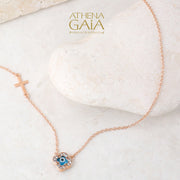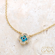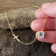 Cross & Faith Stone-Edge Evil Eye Necklace - 14k Gold Necklace