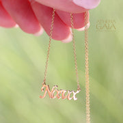 Nava - a name with profound meaning across cultures: "new" or "fresh" in Sanskrit/Hindi, and "beautiful" in Hebrew. This 16.5 inch 14k Gold personalized name necklace embodies both definitions, offering a fresh, beautiful expression of identity.