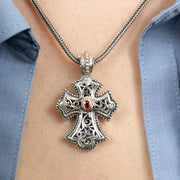 Garden Shadows Ruby Cross (Medium) - Sterling Silver & 18k Gold - Flared Cross