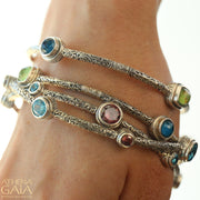 Meadow Breeze 4 Stoned Bracelet - Sterling Silver - Solid Bangle Bracelet