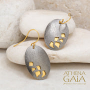 Oval River Stones Earrings - Gold Plated Sterling Silver French Wire Earrings
