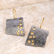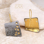 Square River Stones Earrings - Gold Plated Sterling Silver - French Wire Earrings