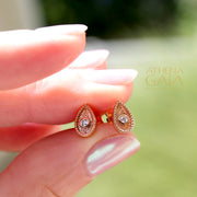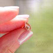 These Geometric Diamond Drop Earrings are crafted from 18k Gold with a center White Diamond. They're classically elegant and perfect for every day wear, or to add a little sparkle to more formal attire.