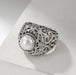 This Santorini Silver Pearl Ring features an impressive Freshwater Pearl surrounded by an intricate 925 Sterling Silver filigree pattern. This unisex ring is crafted with a tapered back creating a blend of timeless artistry and refined easy to wear sophistication, perfect for adding a subtle yet striking touch to any ensemble.