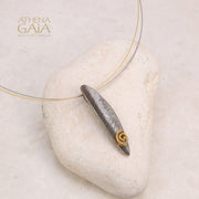 This Argonaut Single Necklace is crafted from 925 Sterling Silver with gold-plating. The wave design (or argonaut) is inspired by the famous tale of Jason and the Argonauts on their epic quest across the Black Sea for the Golden Fleece. The stainless steel cord shown is included.