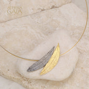Dual Curve Long Leaf Necklace - Gold Plated Sterling Silver