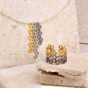 Organic Triple Swing Honeycomb Necklace - Gold Plated Sterling Silver Necklace