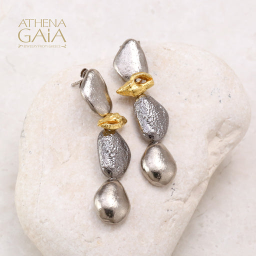 View full detailsConch Shell and Pebble Long Post Earrings - Gold Plated & Sterling Silver